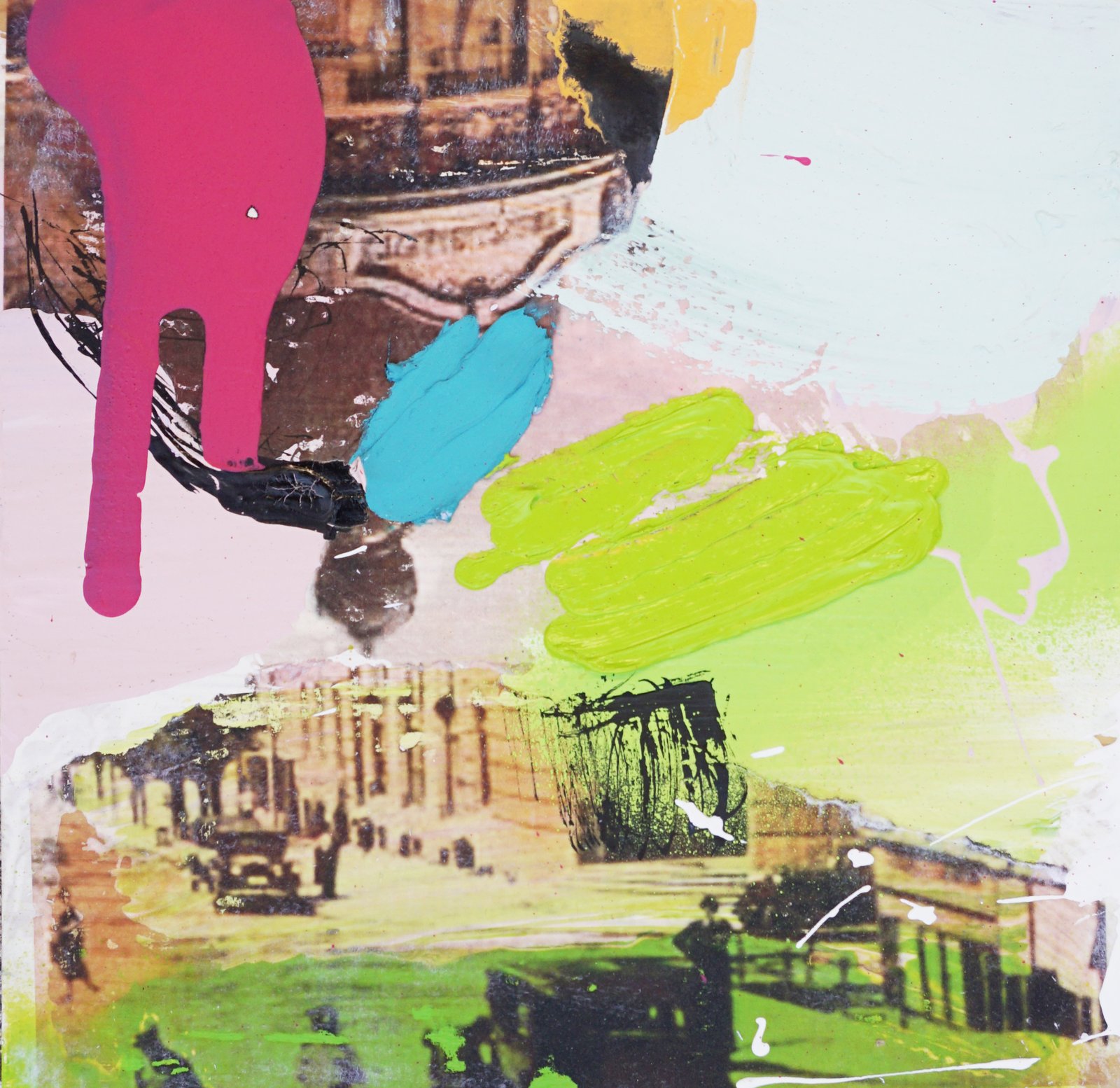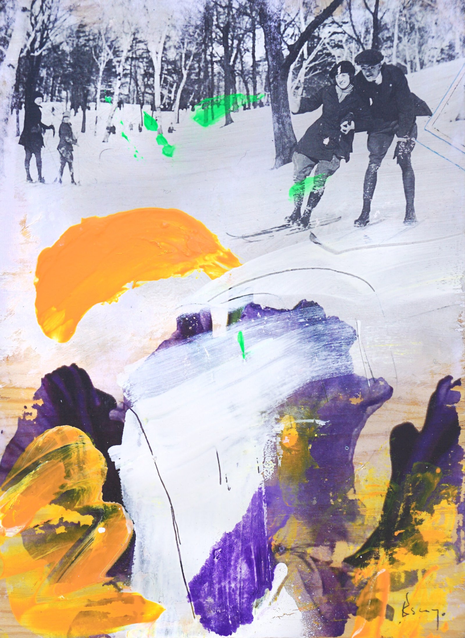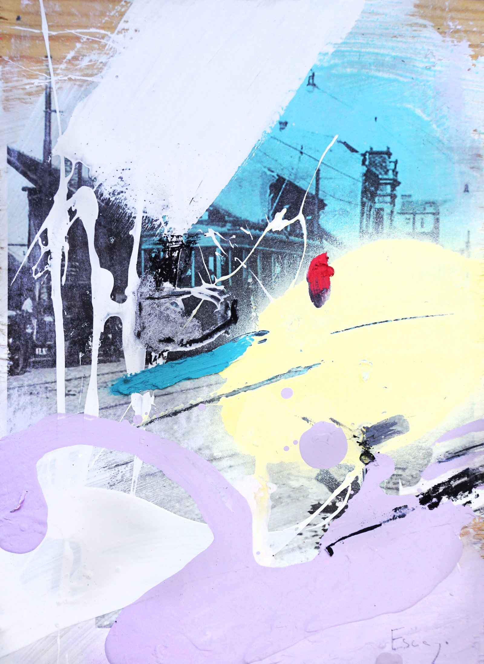 These works are not traditional collages but layered conversations between past and present. I work with old photographs, transferring their faded images onto paper, letting them blur, fragment, and reappear. I intervene—tracing, erasing, adding lines, textures, and color. Paper, paint, and mixed media come together, sometimes seamlessly, sometimes with raw edges exposed. The result is a shifting dialogue between memory and material, where stories resurface, change, and invite new meanings.