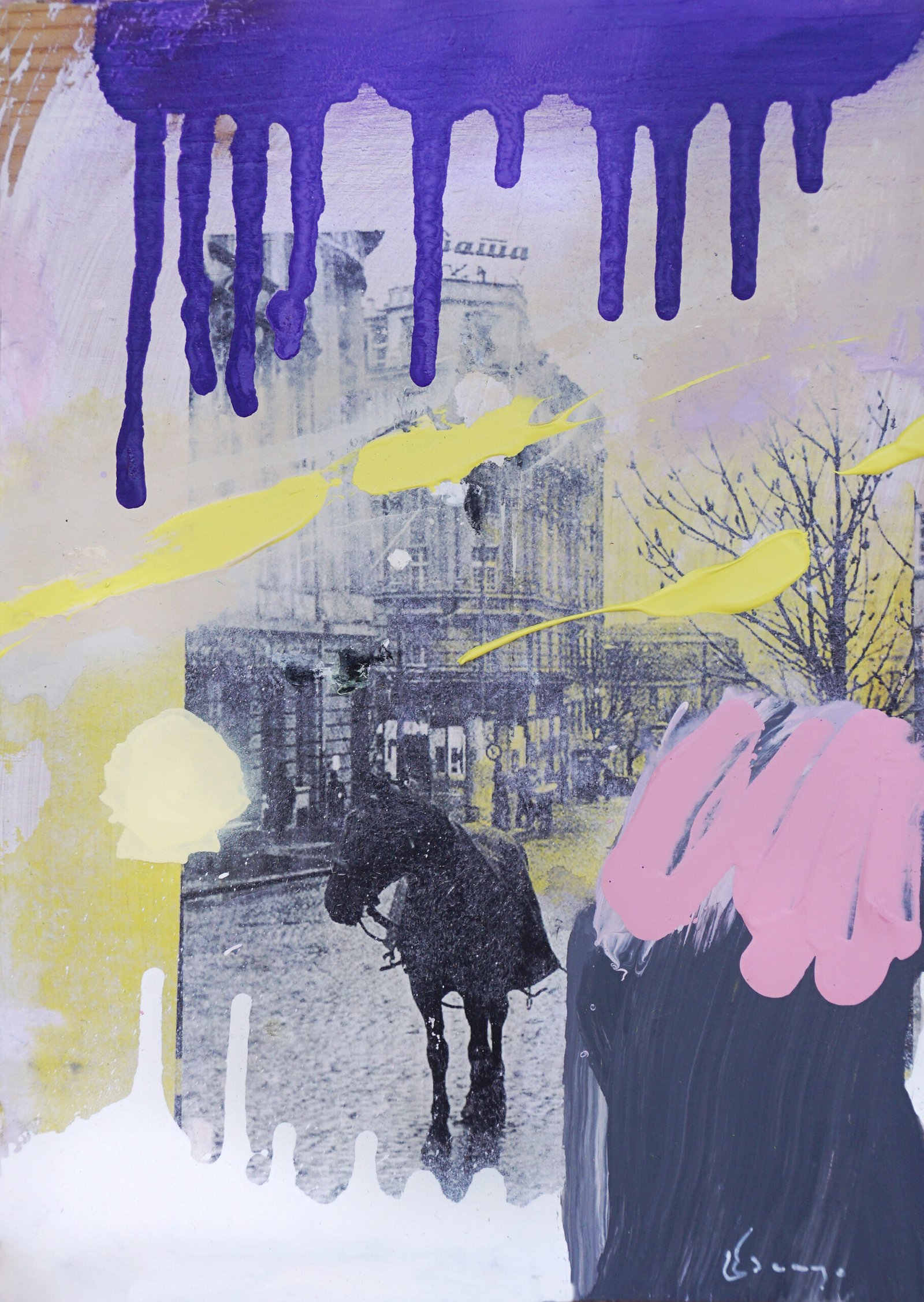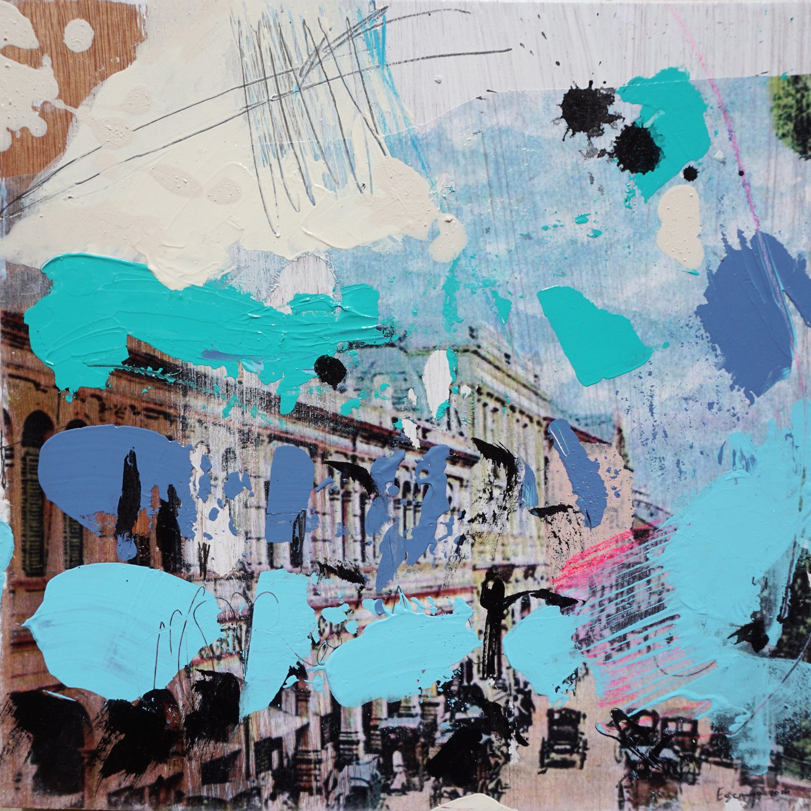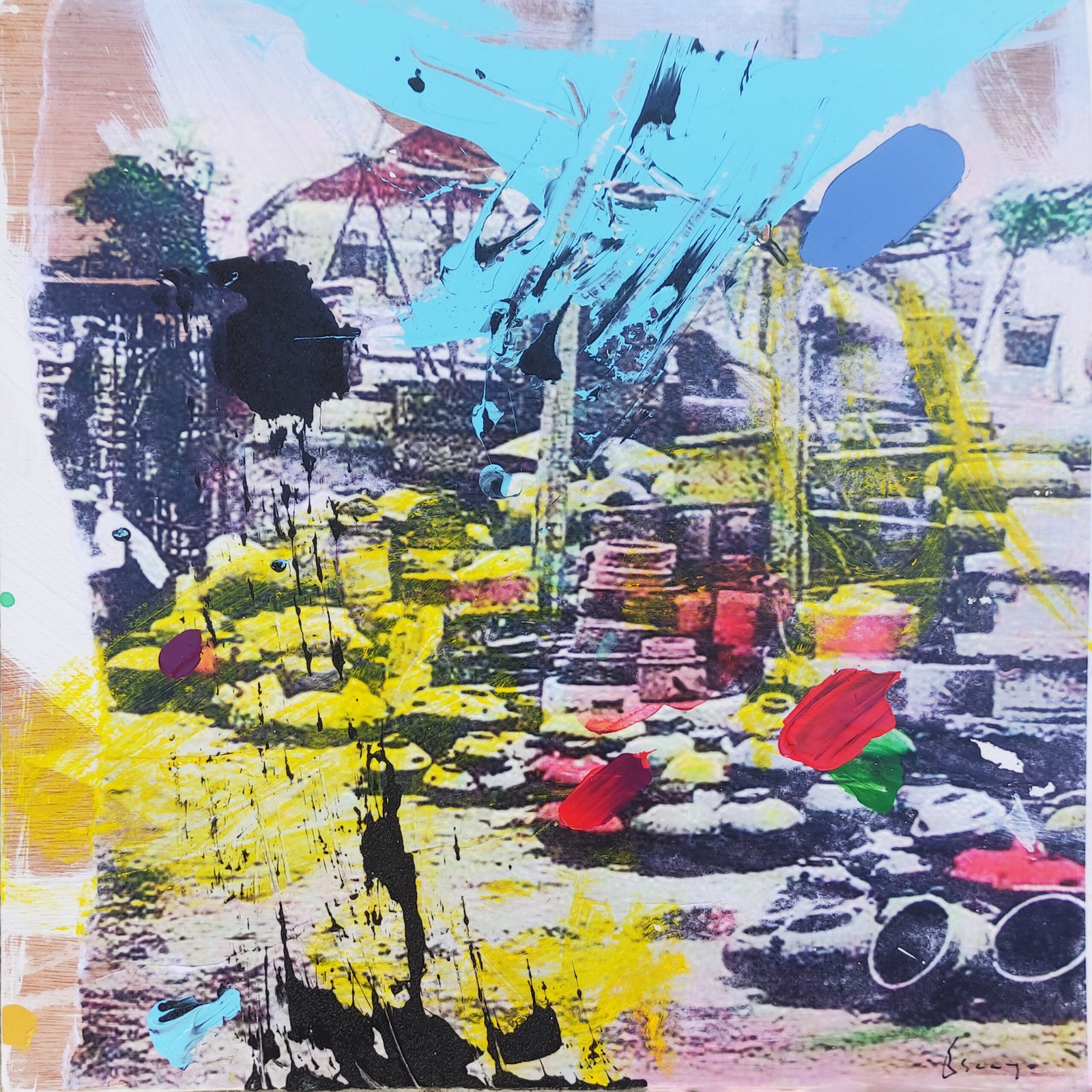 These works are not traditional collages but layered conversations between past and present. I work with old photographs, transferring their faded images onto paper, letting them blur, fragment, and reappear. I intervene—tracing, erasing, adding lines, textures, and color. Paper, paint, and mixed media come together, sometimes seamlessly, sometimes with raw edges exposed. The result is a shifting dialogue between memory and material, where stories resurface, change, and invite new meanings.